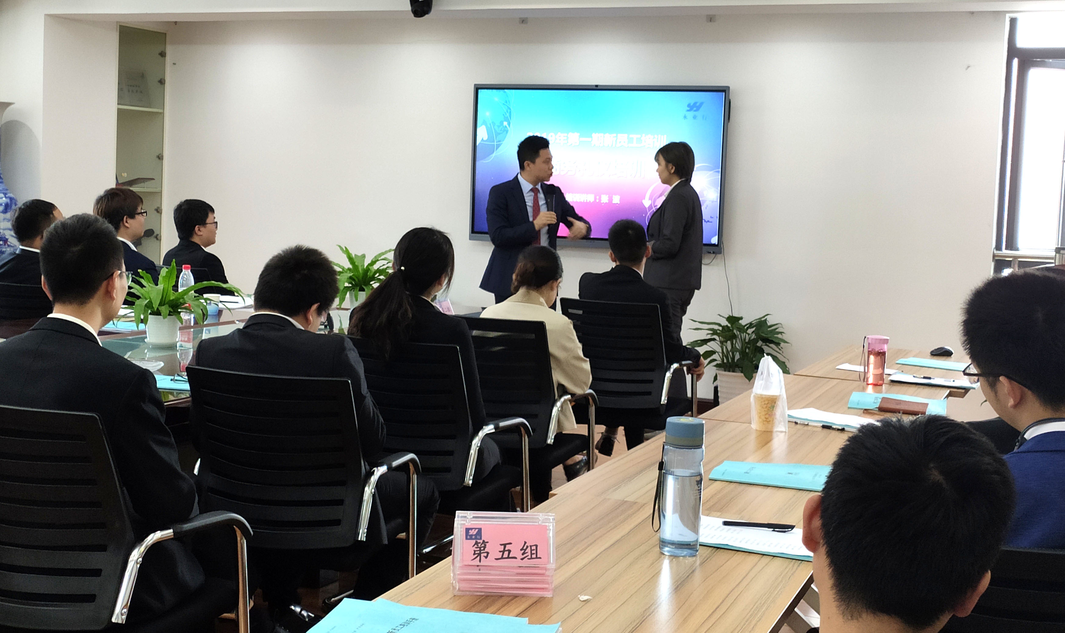 公司职能部门分别就《技术管理制度》《市场管理制度》《公文写作》向新员工进行培训。