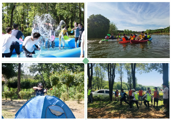 活动当日,团队一行参观完盆景生态园后,在教练指导下分成4组队伍,选队长,起队名,想口号,排队形,一起顺利完成分队任务。活动过程中,队员们积极出谋划策、部署战略、分工配合、尽显其能,通过分组对抗、集体挑战等方式,以昂扬的斗志和饱满的热情完成了“撕名牌”“真人CS”“攻防箭”“皮划艇”“打水仗”等项目,充分体会到了团结协作带来的强大力量。