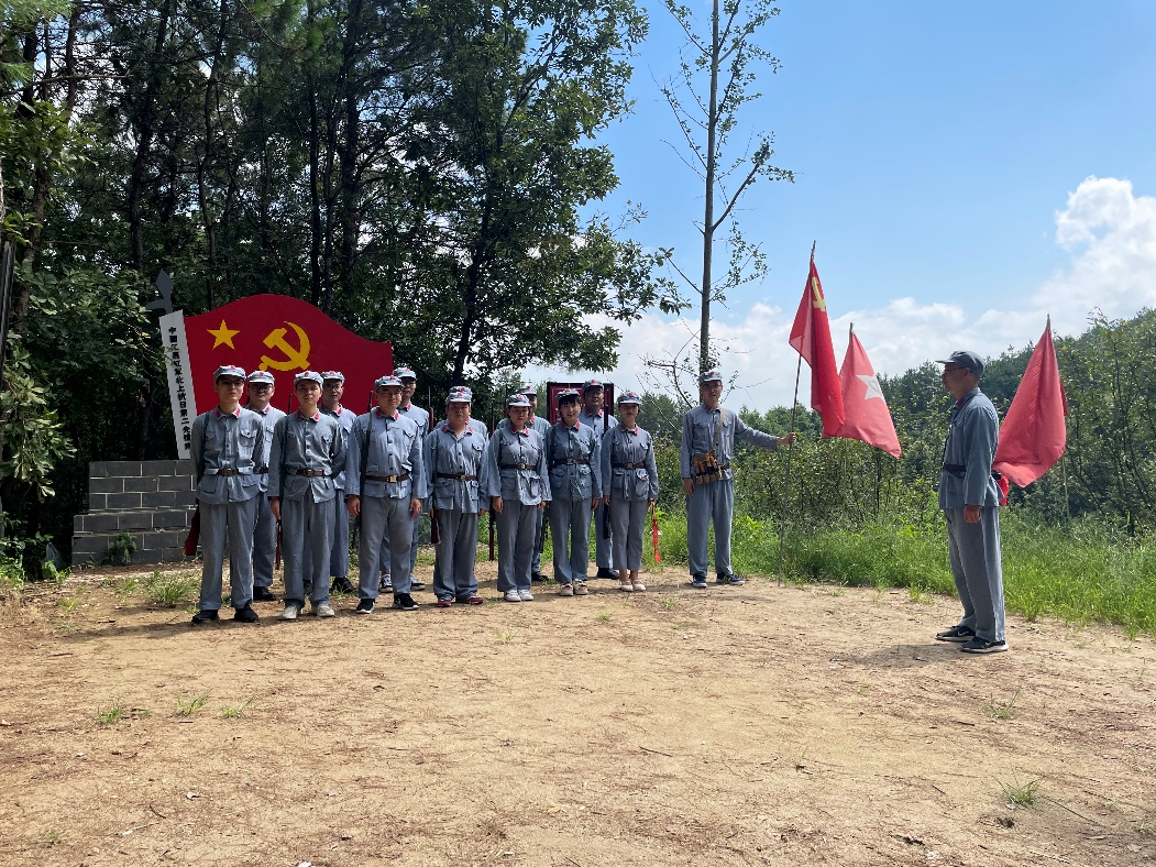 在英山县大别山红色文化培训中心,大家换上红军装,在金建华同志的带领下,重走红25军长征微缩路,用脚步丈量先烈足迹,体验战前动员、攻占碉堡、牛背脊骨战场、庾家河生死战等革命场景,感觉革命先烈的峥嵘岁月。通过重走长征路,党员们深切感受了革命先烈的艰苦付出和强大信念,纷纷表示要学习革命先烈的优良作风,坚定理想信念,牢记职责使命,争做合格党员。