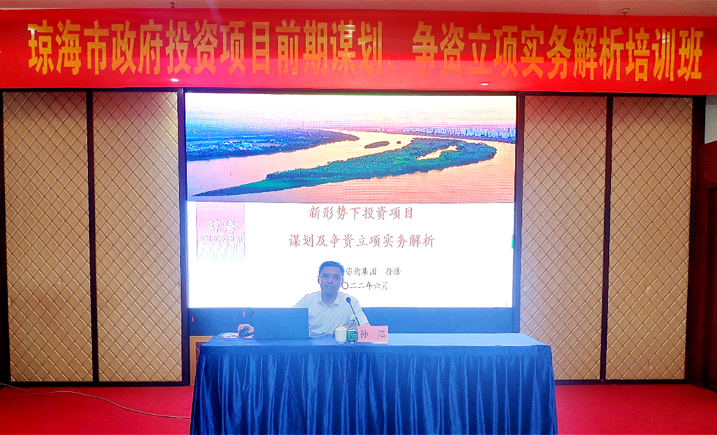 为贯彻落实省政府关于部署加快固定资产投资和专项债支出专题会议要求,2022年6月15日,琼海市发改委组织召开政府投资项目前期谋划、争资立项实务解析培训班,永业行粤海区业务总监孙浩受邀到会培训交流。琼海市发改委副主任余灿主持会议。