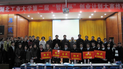 来自湖北工业大学的12个创业团队参加了决赛。经过近4个小时创业计划展示、评委质询、团队答辩及现场打分,加上前期的评委书面打分,最后决出6个优胜奖,3个铜奖,2个银奖和一个金奖。金奖由采用杜仲叶制取高纯度绿原酸新工艺的智柏创业团队所获得。