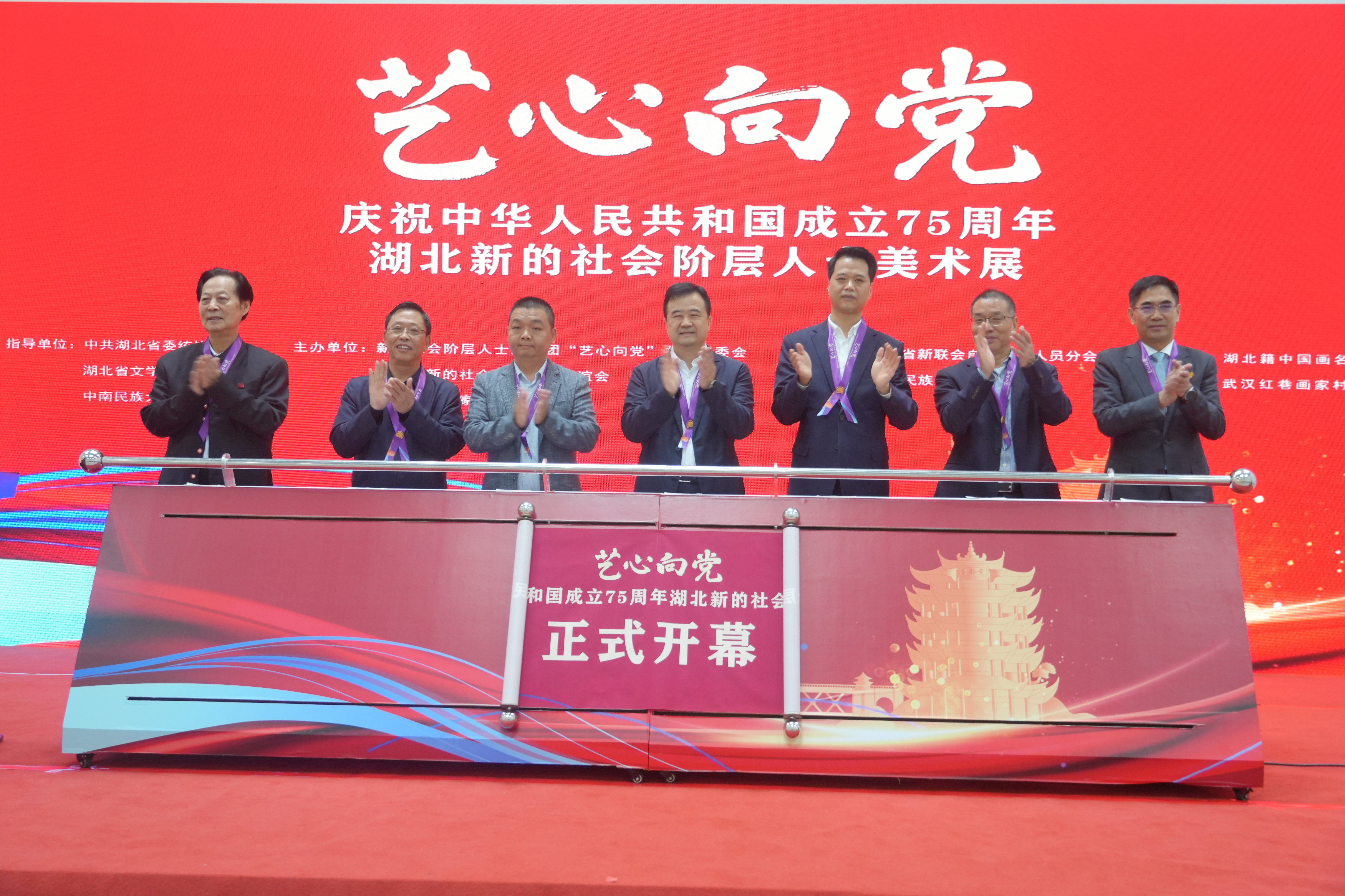 2024年10月21日,湖北省新的社会阶层人士联谊会联合湖北省美术家协会共同举办的“艺心向党”——庆祝中华人民共和国成立75周年湖北新的社会阶层人士美术展开幕式,在中南民族大学美术馆举行。中央统战部六局二处处长李胜出席活动。“艺心向党”全国书画组委会秘书长赵锁平,中共湖北省委统战部副部长(正厅级)张勇强,湖北省文学艺术界联合会党组成员、副主席王永平,中南民族大学党委副书记、副校长宋发军出席活动并讲话。省新联会会长石文先主持活动。省新联会副会长、评估师分会会长、永业行董事长潘世炳,省新联会评估师分会秘书长、永业行常务副总裁吴学锋受邀参加活动。