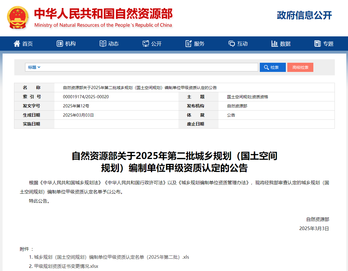 2025年3月3日,自然资源部发布《关于2025年第二批城乡规划(国土空间规划)编制单位甲级资质认定的公告》,永业行城乡规划编制资质成功晋升甲级!这一重要突破标志着永业行综合技术实力和行业影响力迈上新台阶,为全方位服务国家新型城镇化战略、深度参与城市高质量发展注入了强劲动能!
